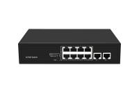 Неадминистрируемый коммутатор, 8 RJ-45 POE портов (10/100 Мбит/с), 2 RJ-45 Uplink порта (10/100 Мбит/с), бюджет на порт до 30 Вт, общий бюджет до 120 Вт.