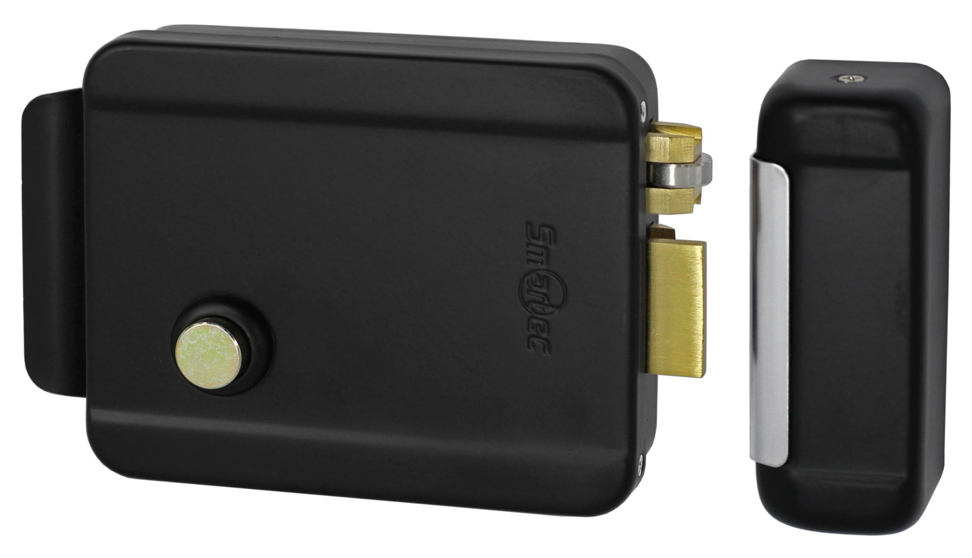 Эл-мех. накладной замок, черный, НЗ, универсальный DIN, цилинр снаружи, кнопка изнутри, питание 12VDC/1А, -40°+50°С, окрашенная сталь.