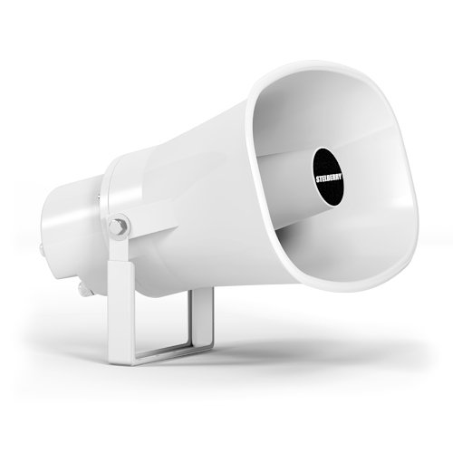 Рупорный уличный громкоговоритель Stelberry F-430; 30 Ватт; длина линии до 1000 метров; полоса воспроизводимых частот 250...6 500 Гц; встроенный усилитель D-класса; 2 гермоввода для кабеля; 48 В; 106 дБ; -40...+50°C; IP 66; 283х205х310 мм; 1,17 кг