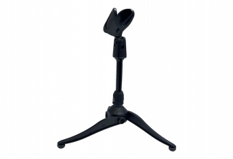 Стойка микрофонная настольная прямая телескопическая со складными ножками и держателем микрофона в комплекте.
