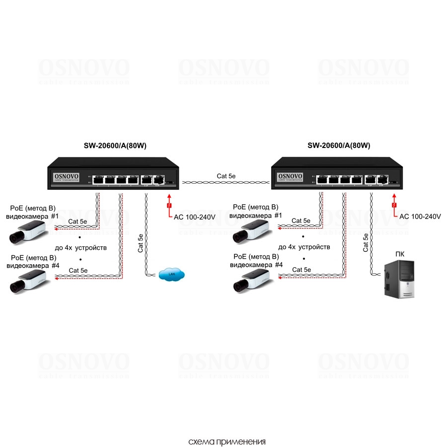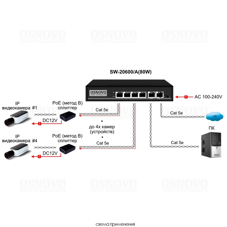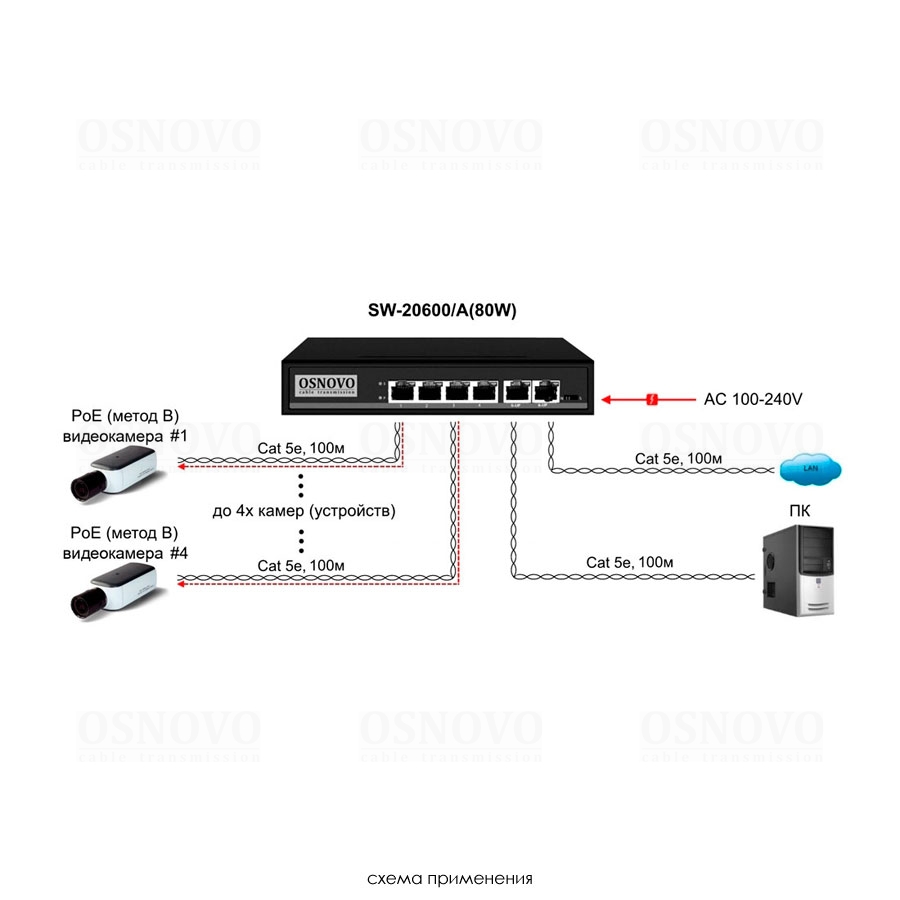 Passive PoE коммутатор Fast Ethernet на 6 портов. Порты: 4 х FE (10/100 Base-T, 52V 4,5(+) 7,8(–)) совместимы с PoE (IEEE 802.3af/at), 2 x FE (10/100 Base-T) Uplink. Совместим со стандартами PoE IEEE 802.3af/at. Мощность PoE на порт - до 30W. Выходное напряжение 52V. Поддержка режима CCTV: Увеличение расстояния передачи данных и питания до 250м. Встроенная грозозащита 3кВ. Питание: AC100-240V (80W) Встроенный БП. Размеры (ШхВхГ): 190x35x130мм. Рабочая температура: 0...+50 гр. С