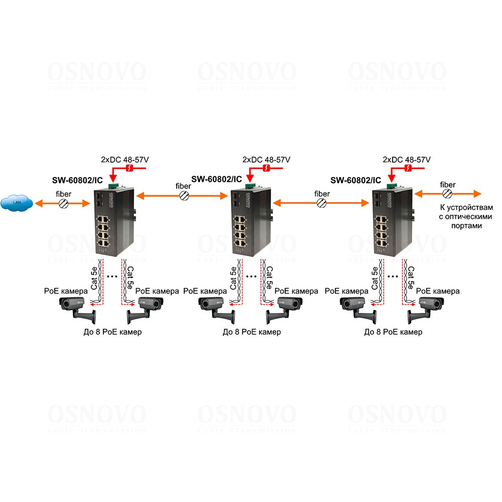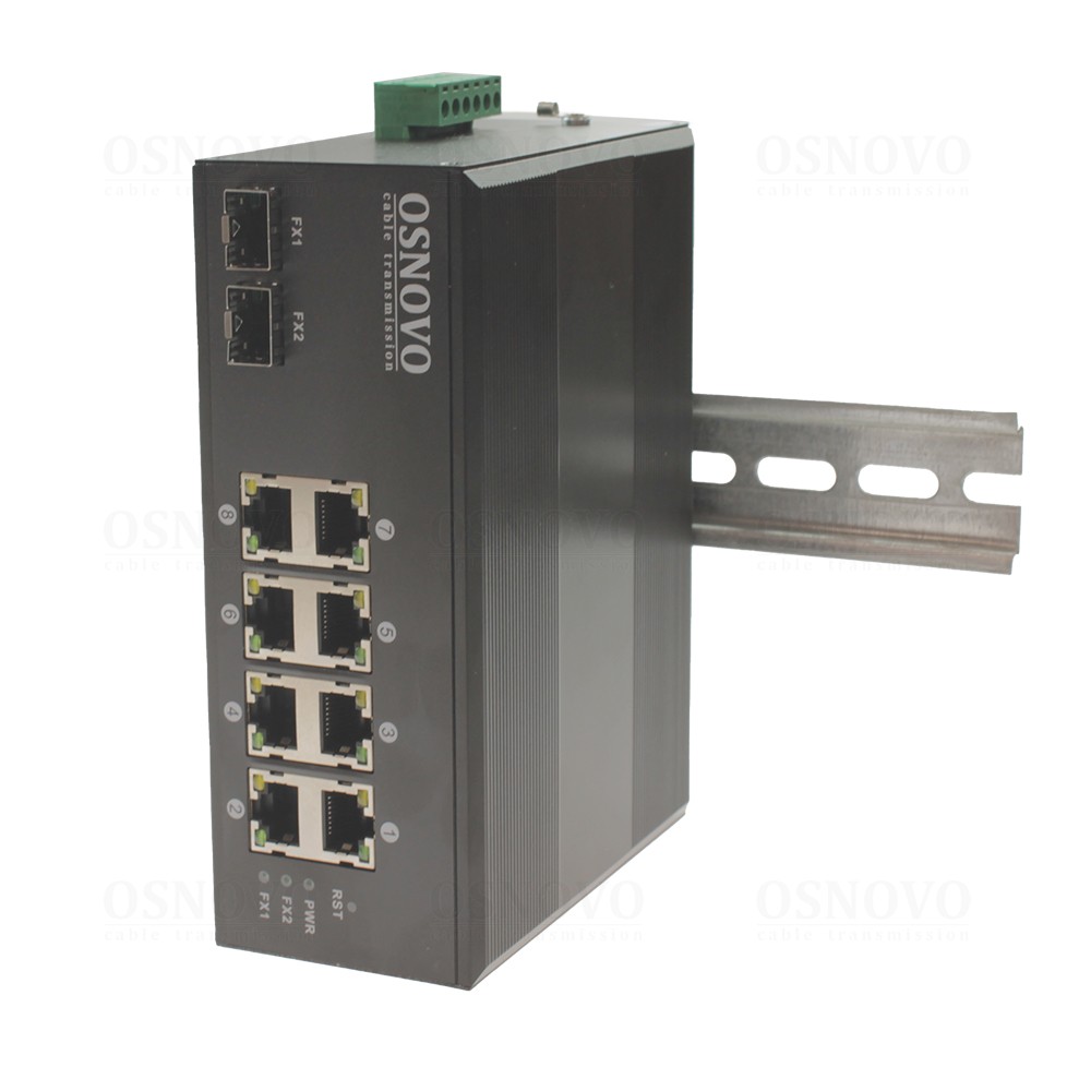 Промышленный PoE коммутатор на 10 портов. Порты: 8 x FE (10/100Base-T) с PoE (до 30W) + 2 x GE SFP (1000Base-X). Вход для резервного питания. Встроенная грозозащита. Соответствует стандартам PoE IEEE 802.3af/at. Автоматическое определение PoE устройств. Суммарная мощность PoE до 240W. Питание: 2 x входа DC48-57V(245W). БП в комплект НЕ входит. Размеры (ШхВхГ): 60x167x125мм. Монтаж на DIN-рейку. Рабочая температура: -40…+85°С.