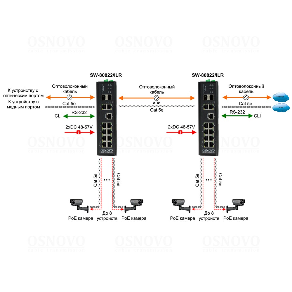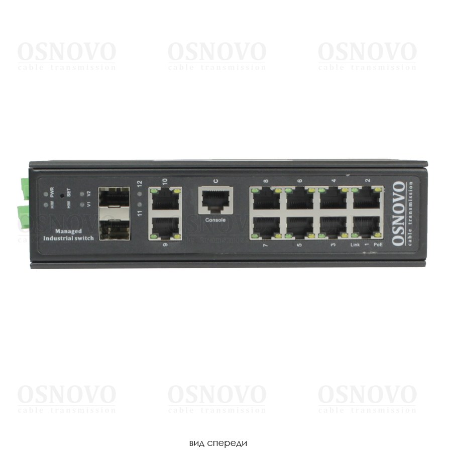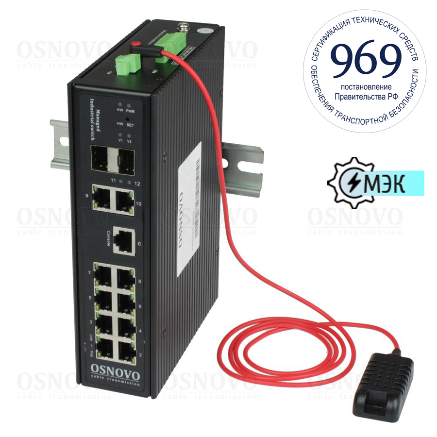 Промышленный управляемый (L2+) PoE коммутатор Gigabit Ethernet на 12 портов. Порты: 2 x GE (10/100/1000Base-T) с PoE BT (до 90W) + 6 x GE (10/100/1000Base-T) с PoE (до 30W) + 2 x GE RJ45 (10/100/1000Base-T)+ 2 GE SFP (1000Base-X). Вход для резервного питания и тревожный выход. Встроенная грозозащита . Уровень управления L2+. Соответствует стандартам PoE IEEE 802.3af/at/bt. Автоматическое определение и режим антизависания PoE устройств, управление питанием. Суммарная мощность PoE до 360W. Встроенная система мониторинга температуры/ напряжения + внешний датчик температуры/ влажности. Поддержка ПО OSNOVO Monitoring System. Выходы типа "Сухой контакт", Цифровой вход. Питание: 2 x входа DC48-57V(385W). БП в комплект НЕ входит. Размеры (ШхВхГ): 50x188x130мм. Монтаж на DIN-рейку. Рабочая температура: -40…+80°С. Имеется Сертификат Транспортной Безопасности.