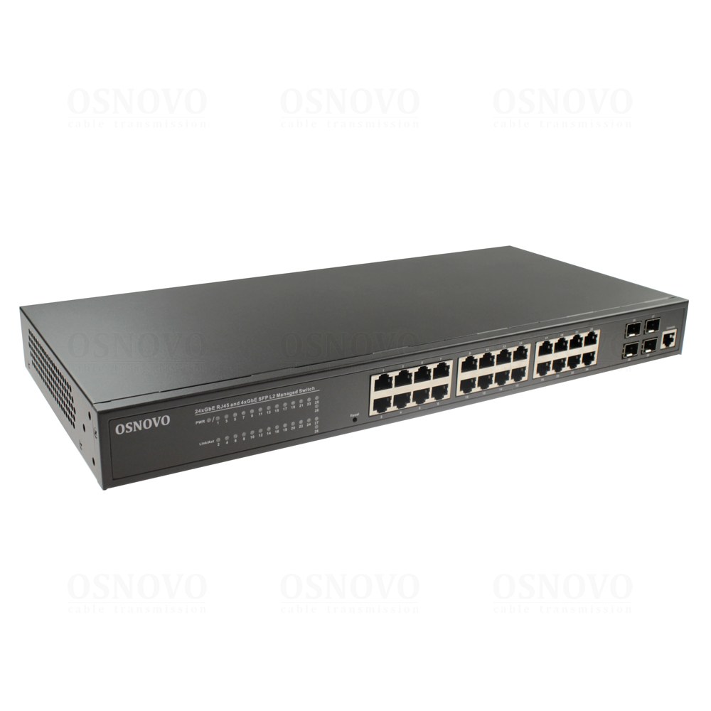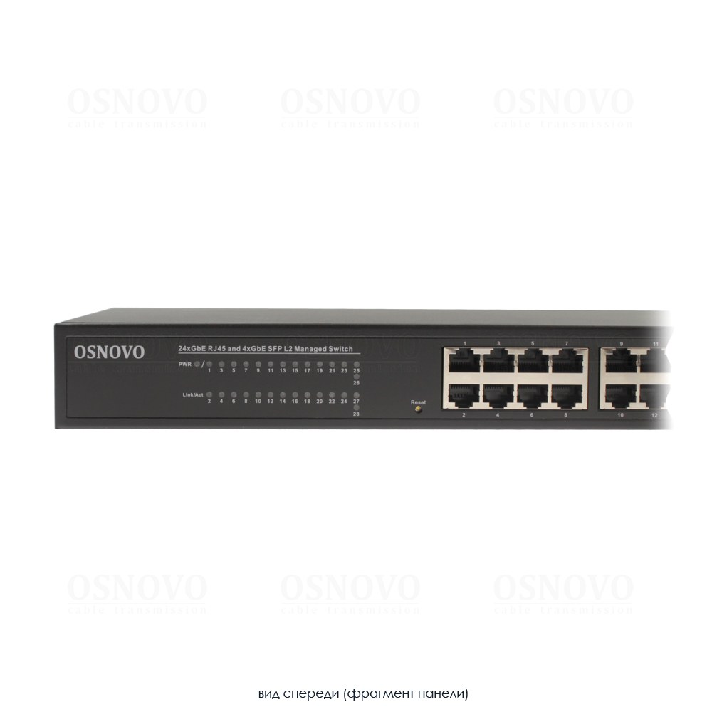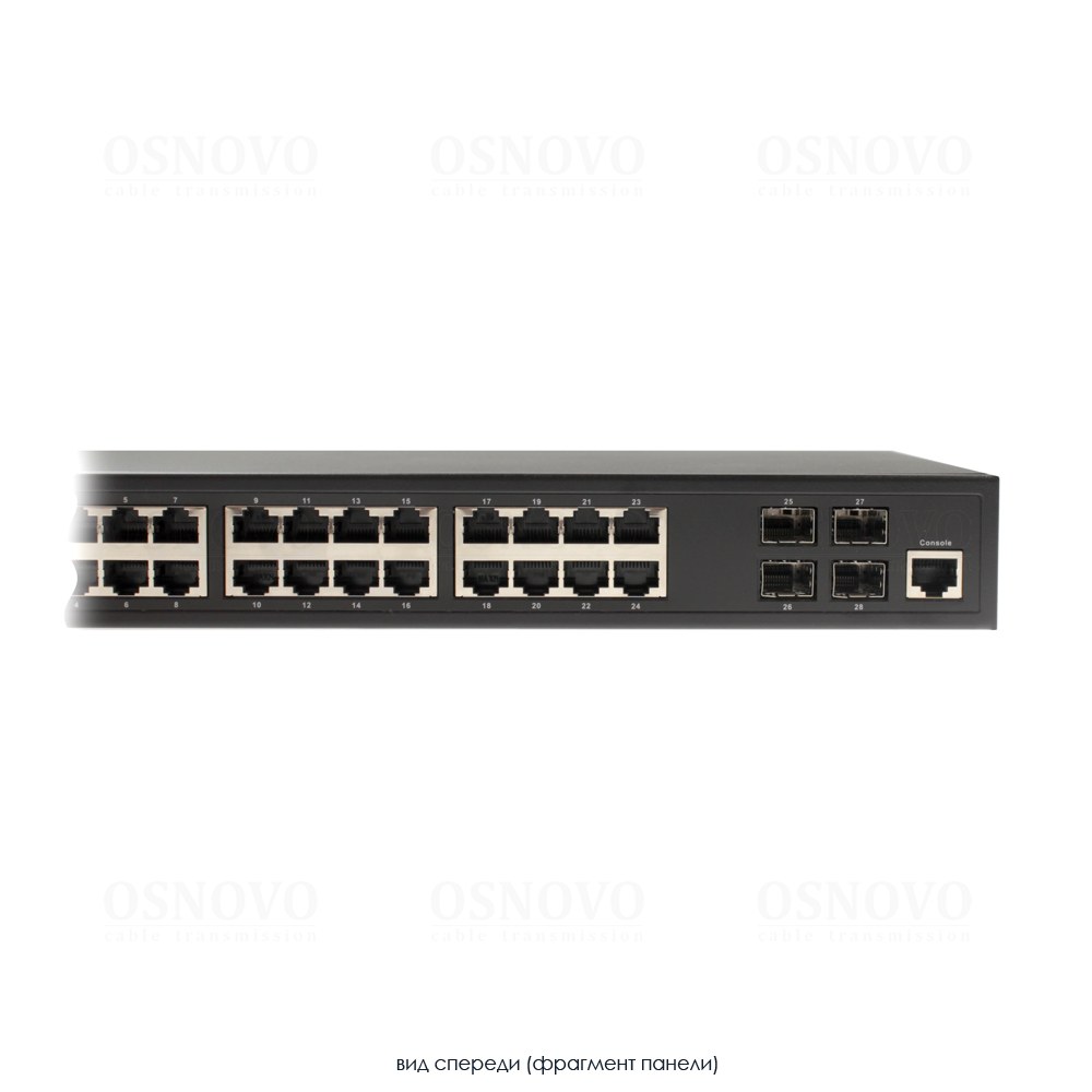 Управляемый L2+ коммутатор Gigabit Ethernet на 28 портов.Порты: 24 x GE (10/100/1000Base-T) + 4 x GE SFP (1000Base-X), Консольный порт, Уровень управления L2+ (Full managed), Поддержка Jumbo Frame 10K, IGMP Snooping, DHCP-сервер. Встроенная грозозащита 6kV на порт. Монтаж в 19" стойку, крепление в комплекте. Питание: встроенный БП AC100-240V(25W). Размеры (ШхВхГ): 440x44x200мм. Рабочая температура: 0...+40°С.