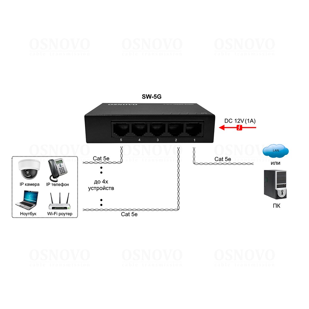 Неуправляемый коммутатор Gigabit Ethernet на 5 портов. Порты: 5 x GE (10/100/1000Base-T). Auto MDI/MDIX Встроенная грозозащита 2кВ. В комплекте БП DC12V(1A). Размеры (ШхВхГ): 100 x 23 x 65мм. Рабочая температура: 0...+40 гр. С.