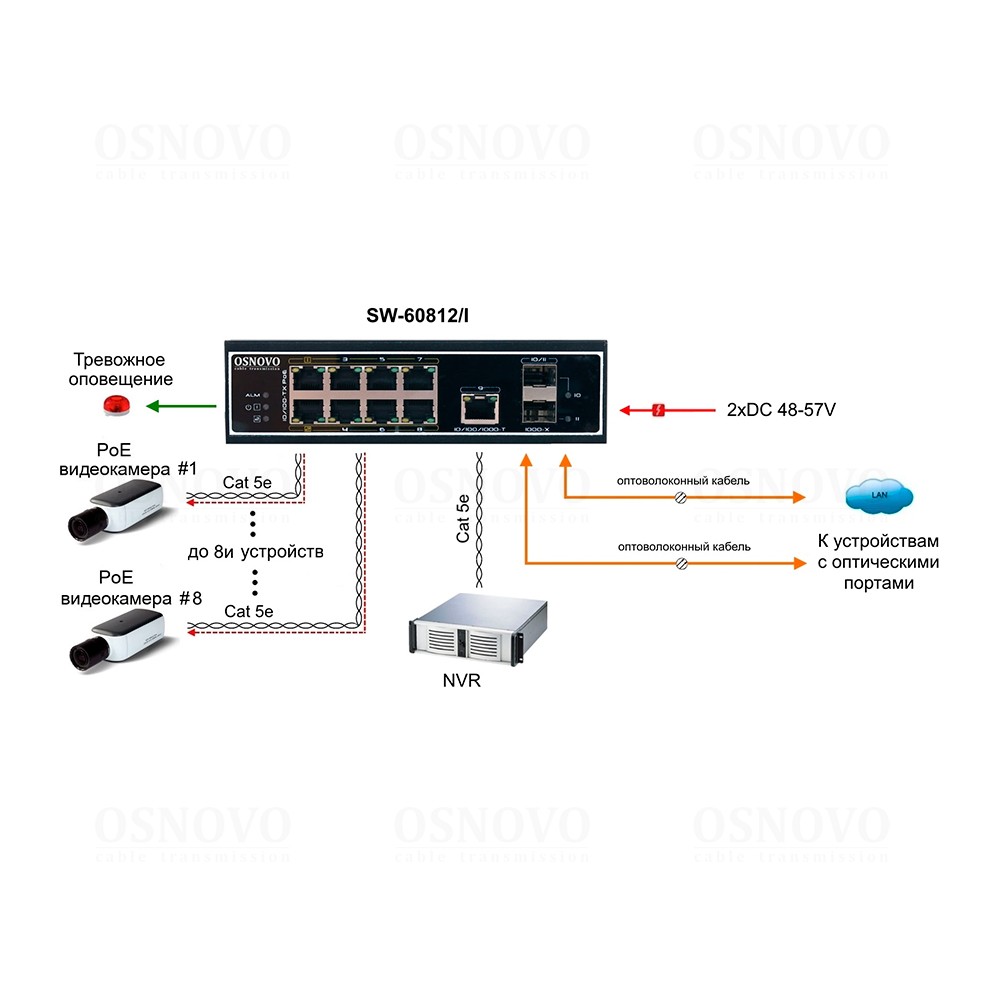 Промышленный PoE коммутатор на 11 портов. Порты: 6 x FE (10/100Base-T) с PoE (до 30W) + 2 x FE (10/100Base-T) с PoE (до 60W) + 1 x GE (10/100/1000Base-T) + 2 x GE SFP (1000Base-X). Вход для резервного питания. Встроенная грозозащита. Соответствует стандартам PoE IEEE 802.3af/at/bt. Автоматическое определение и режим антизависания PoE устройств. Суммарная мощность PoE до 300W. Поддержка режима CCTV: Увеличение расстояния передачи данных и питания до 250м. Питание: 2 x входа DC48-57V. БП в комплект НЕ входит. Размеры (ШхВхГ): 50x165x115мм. Монтаж на DIN-рейку. Рабочая температура: -40…+75°С.