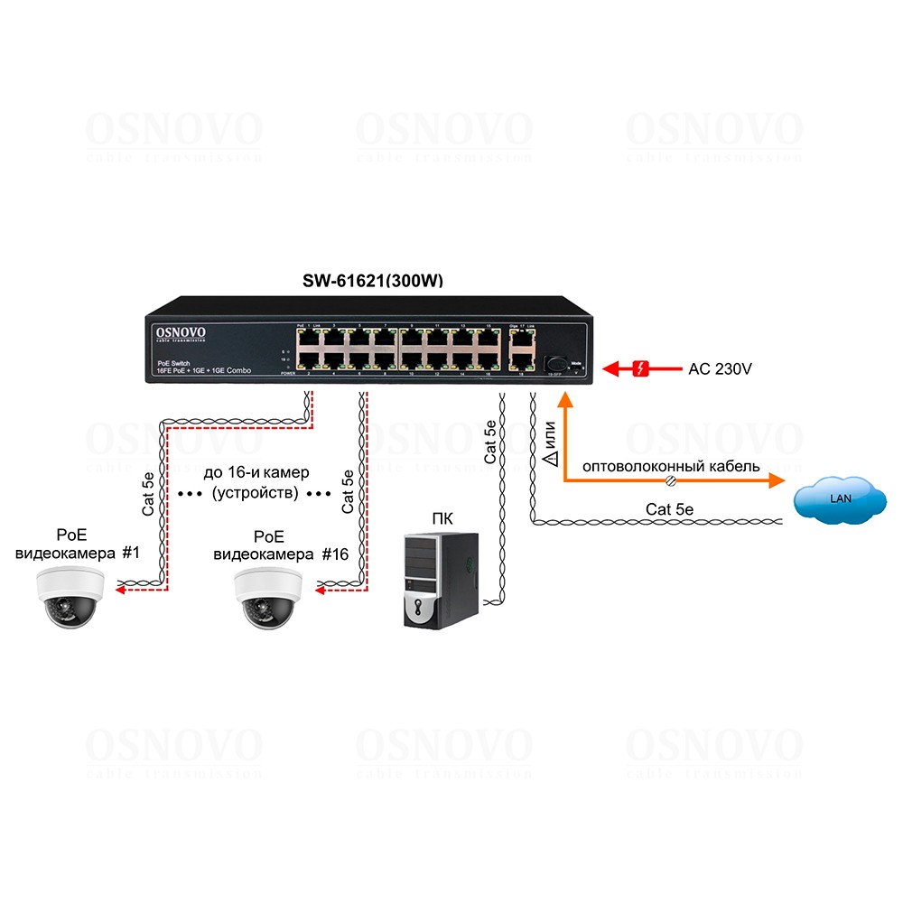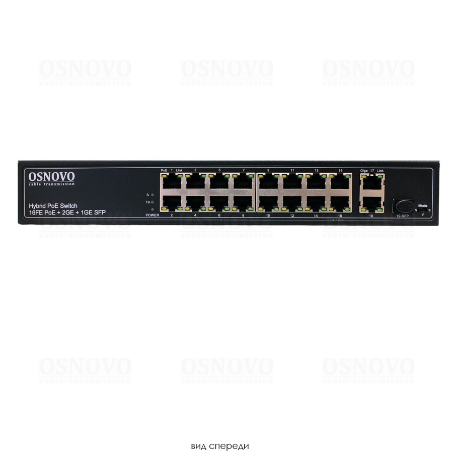 PoE коммутатор Fast Ethernet на 16 x RJ45 PoE + 1 x RJ45 GE + 1 Combo GE порт. Порты: 2 x FE (10/100Base-T) с PoE (до 60W, A+B) + 14x FE (10/100Base-T) с PoE (до 30W) , 1 x GE Uplink (RJ45), 1 x GE Combo Uplink. Соответствует стандартам PoE IEEE 802.3af/at/bt. Автоматическое определение и режим антизависания PoE устройств. Суммарная мощность PoE до 292W. Поддержка режима CCTV: Увеличение расстояния передачи данных и питания до 250м, изоляция портов (VLAN). Встроенная грозозащита 3kV на порт. Питание: AC100-240V (300W). Встроенный БП. Монтаж в 19 - дюймовую стойку, крепление в комплекте. Размеры (ШxВxГ): 295x45x195мм. Рабочая температура: -10...+55гр. С.
