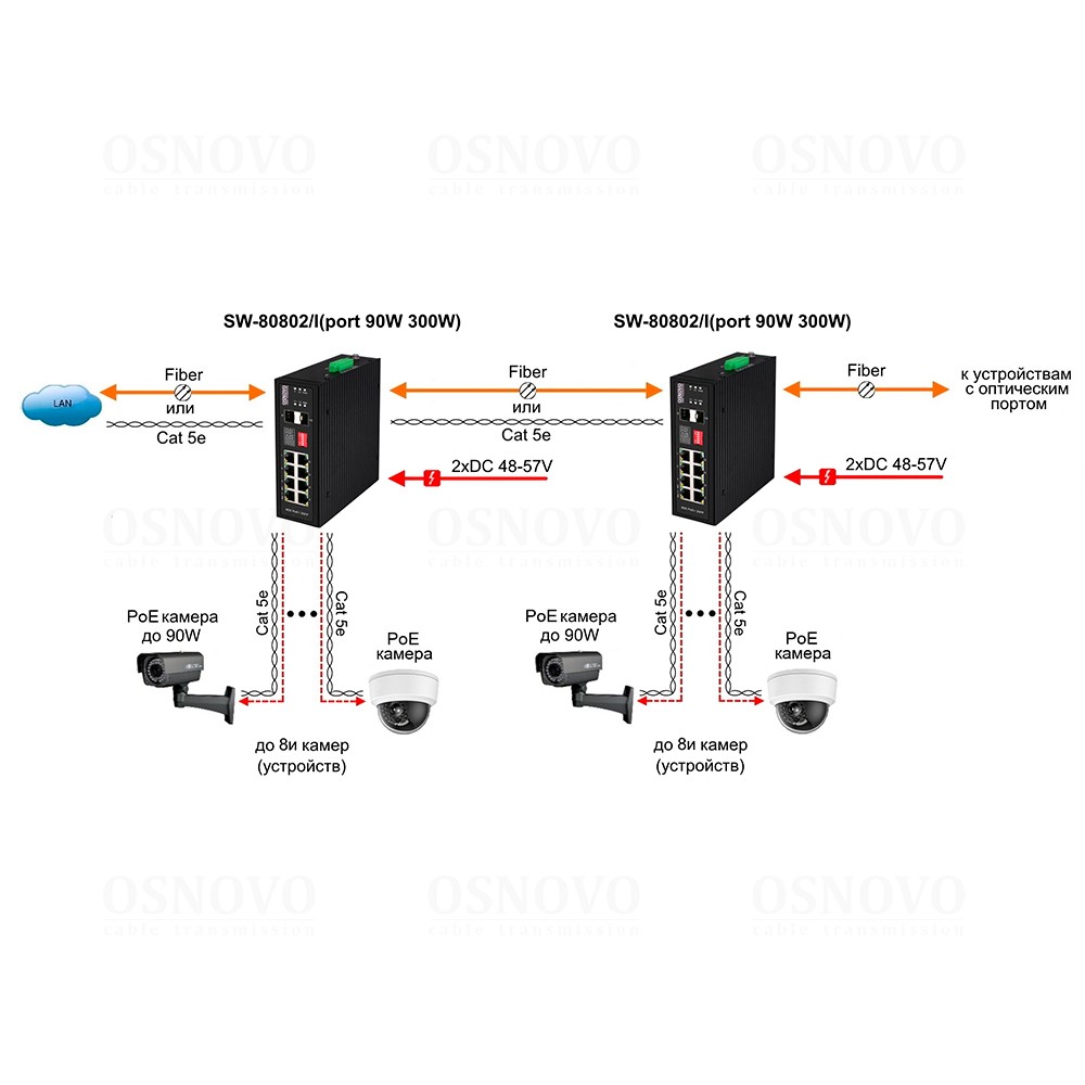 Промышленный HiPoE коммутатор Gigabit Ethernet на 8GE PoE + 2 GE SFP порта. Порты: 1 x GE (10/100/1000Base-T) с PoE BT (до 90W) + 7 x GE (10/100/1000Base-T) с PoE (до 30W) + 2 x GE SFP (1000Base-X). Соответствует стандартам PoE IEEE 802.3af/at/bt. Встроенная грозозащита 6кВ. Автоматическое определение и режим антизависания PoE устройств. Поддержка режима CCTV: Увеличение расстояния передачи данных и питания до 250м. Питание: 2 x входа DC48-57V(315W). БП в комплект НЕ входит. Монтаж на DIN-рейку или на стену (крепление в комплекте). Размеры (ШхВхГ): 50х162х130мм. Вес: 1,1кг. Рабочая температура: -40…+80°С.