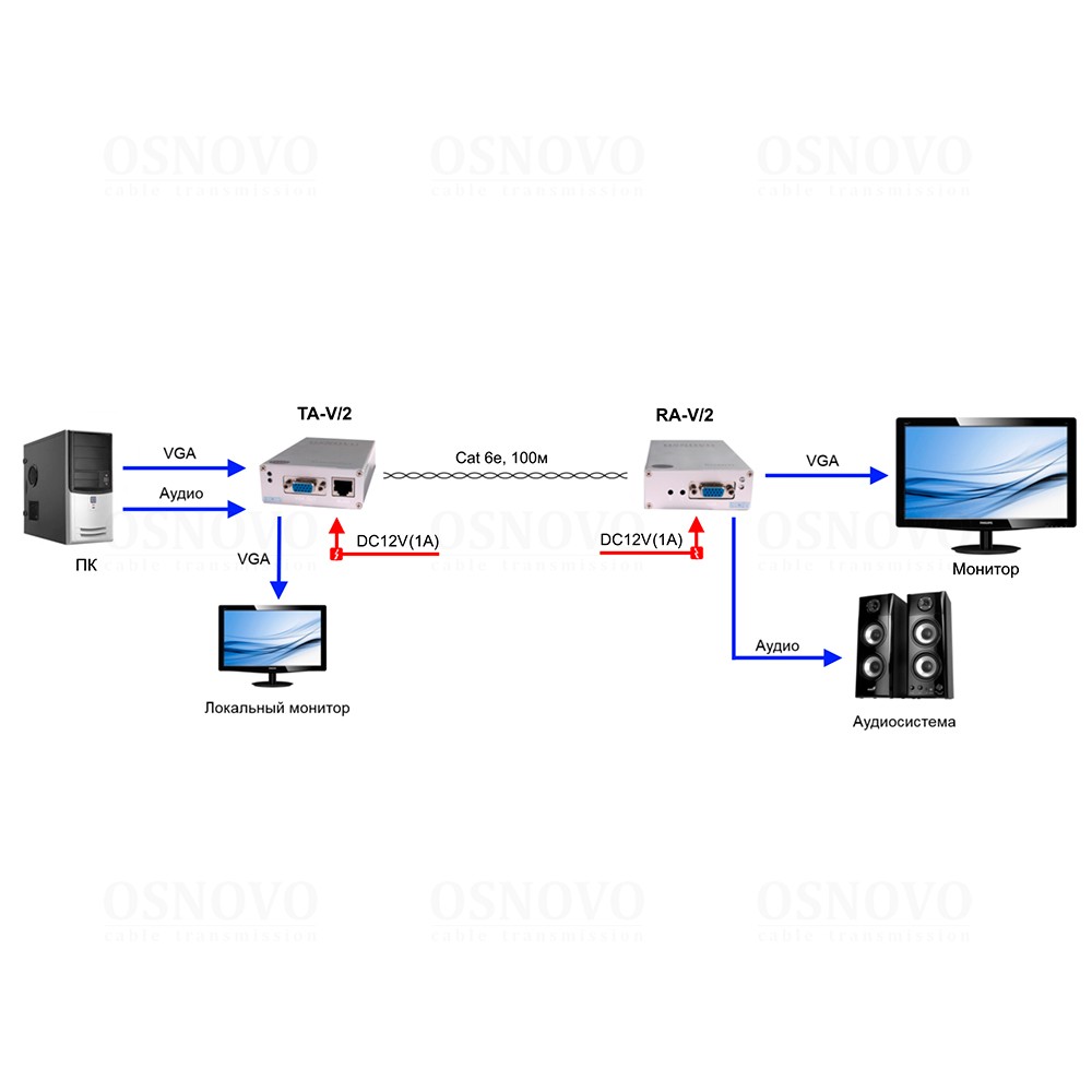 Комплект (передатчик+приёмник) для передачи VGA и аудиосигнала по кабелю UTP CAT5 до 100м. Разрешение до 1920х1440. Мет. корпус. В комплекте: БП DC12V(1A) 2шт. Размеры передатчика (ШxВxГ): 70х25х110мм. Размеры приёмника (ШxВxГ): 70х25х110мм. Рабочая температура: 0... +55 С.