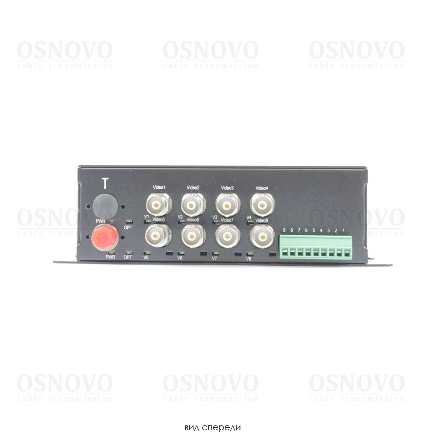 Оптический передатчик 8 каналов видео HDCVI/HDTVI/AHD/CVBS и 1 канала управления (RS485) по одномодовому оптоволокну до 20км. Максимальное разрешение 2560x1920. Рабочие длины волн CWDM:1310nm/1550nm/1490nm. Вх. - BNCх8/Роз.5,5мм(DC5V)/ Клемм.колодка(RS485). Вых. - FC. В комплекте: БП DC5V(3A). Размеры (ШxВxГ): 167*45*173мм. Вес:1,1 кг. Рабочая температура: -15…+60°С.