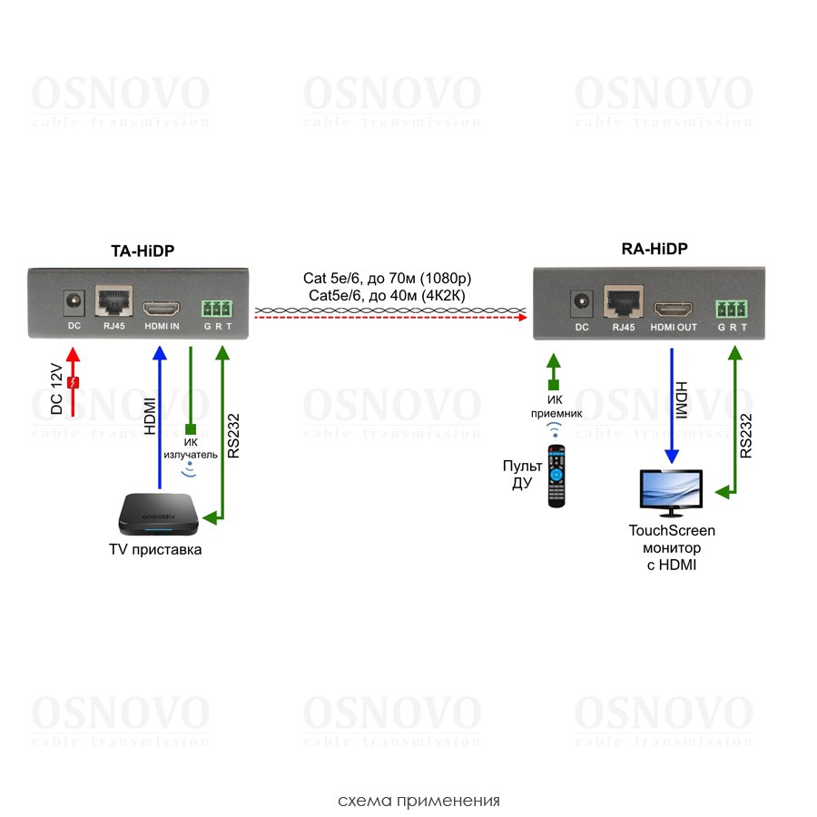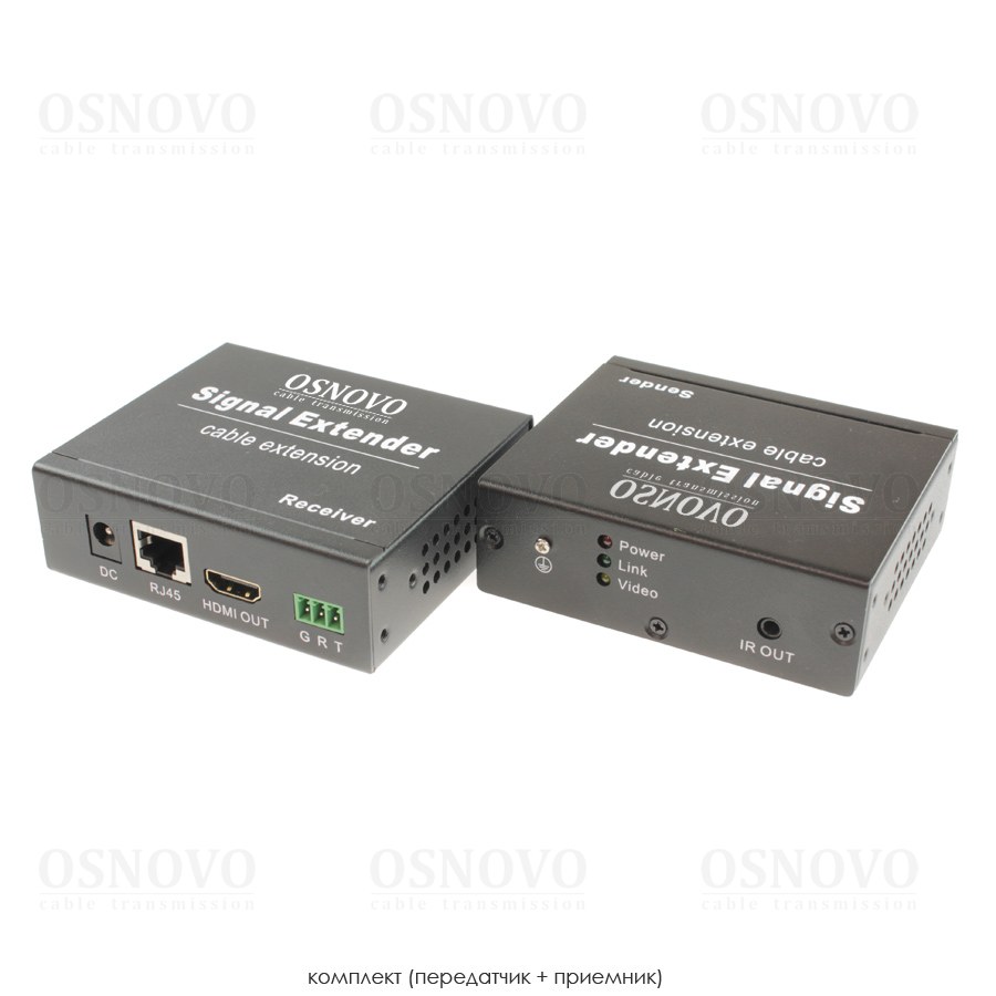 Комплект для передачи HDMI, RS232, ИК управления и питания по кабелю витой пары (HDBaseT). Расстояние передачи до 40м (4K2K(30Гц)), до 70м(1080p). Поддержка технологии Power over HDBaseT(PoH). Поддержка HDMI 1.4 и HDCP 1.2. Передача RS232 в прямом и обратном направлении. Передатчик:Вх.-HDMI(A)/Роз.2,1x5,5мм(DC12V)/TGR(RS232). Вых.-TRS3.5мм(IR)/RJ45. Приёмник:Вх.-RJ45/TRS3.5мм(IR)/Роз.2,1x5,5мм(DC12V)/TGR(RS232). Вых.-HDMI(A). В комплекте БП DC12V(1,5А) - 1шт(приемник внешнего питания не требует), кабель HDMI, кабель RS232x2, ИК-излучатель, ИК-приёмник. Размеры каждого устройства (ШxВxГ): 93x30x80мм. Вес: 0,26 кг. Рабочая температура: -15...+55С.