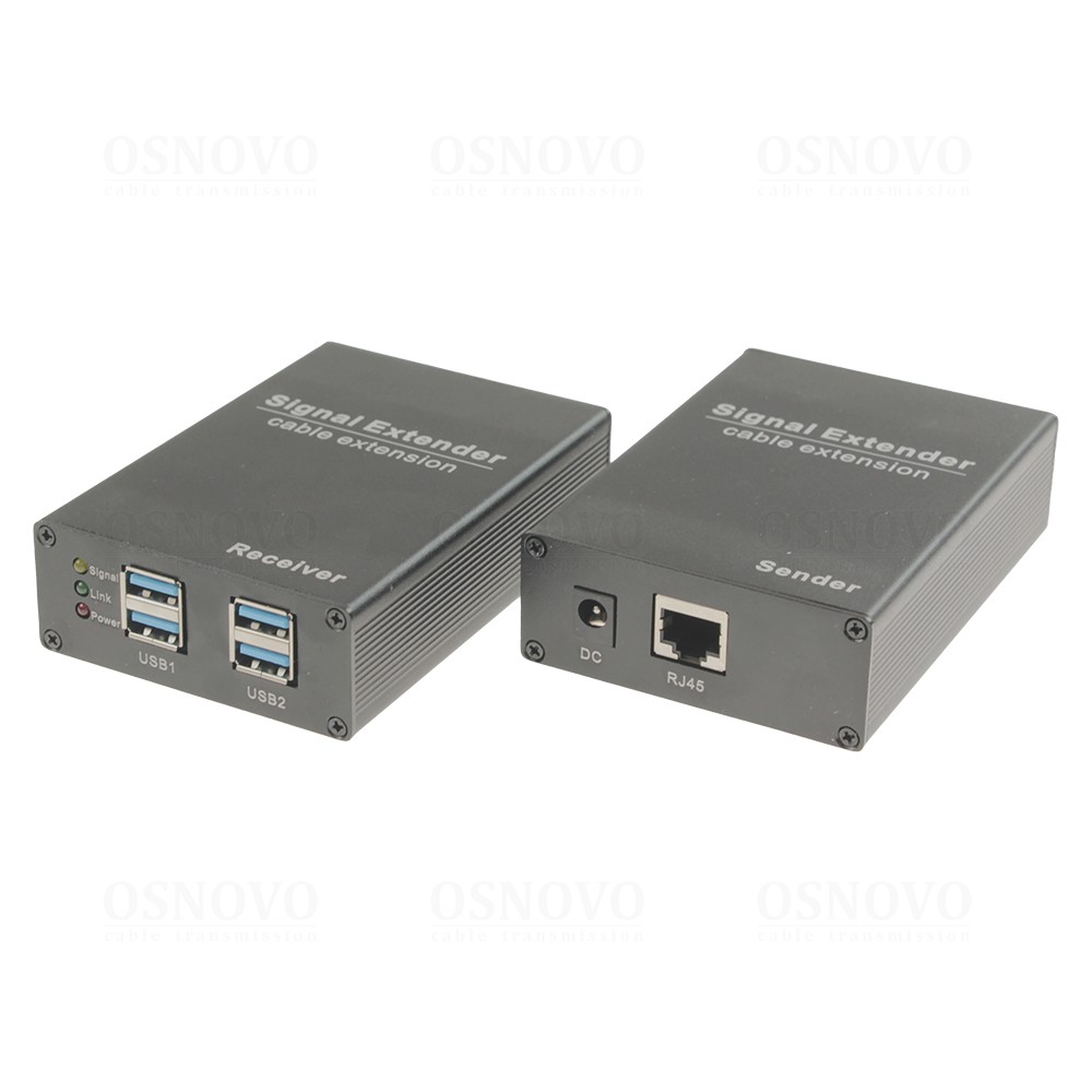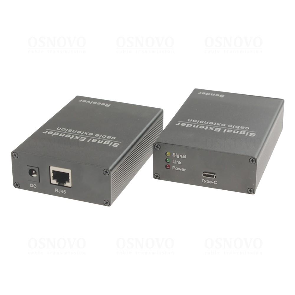 Удлинитель интерфейса USB 3.0 по кабелю витой пары CAT6e/7 до 100м. Приемник: Вх.-RJ45/Роз.2,1х5,5мм(DC12V). Вых.-USB(A)x4.Передатчик:Вх.-USB(Type-C)/Роз.2,1х5,5мм(DC12V). Вых.-RJ45.В комплекте БП DC12V(2A)-2шт, кабель USB. Размеры передатчика и приемника (ШхВхГ):74x35x108мм. Вес:0,18 кг. Рабочая температура -15...+55°C.