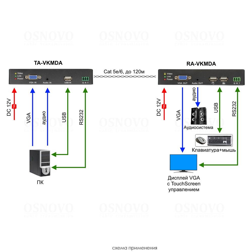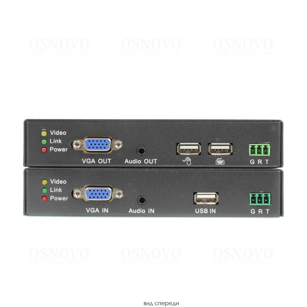 Комплект для передачи VGA, USB, RS232 и аудио по кабелю витой пары до 120м. Максимальное разрешение сигнала до 1920x1080(60Гц). Порты USB предназначены только для подключения клавиатуры и мыши. Передатчик: Вх.-VGA/USB(A)/TRS3.5мм(Audio)/RS232/Роз.2,1x5,5мм(DC12V). Вых.-RJ45. Приемник:Вх.-USB(A)x2/RJ45/Роз.2,1x5,5мм(DC12V). Вых.- VGA/TRS3.5мм(Audio)/RS232. В комплекте БП DC12V(1А)-2шт, VGA кабель, USB кабель, аудио кабель, RS232(3-pin-DB9) кабель-2шт. Размеры каждого устройства: (ШxВxГ):157x30x105мм. Вес каждого устройства: 0,45кг. Рабочая температура: -15…+55°С.