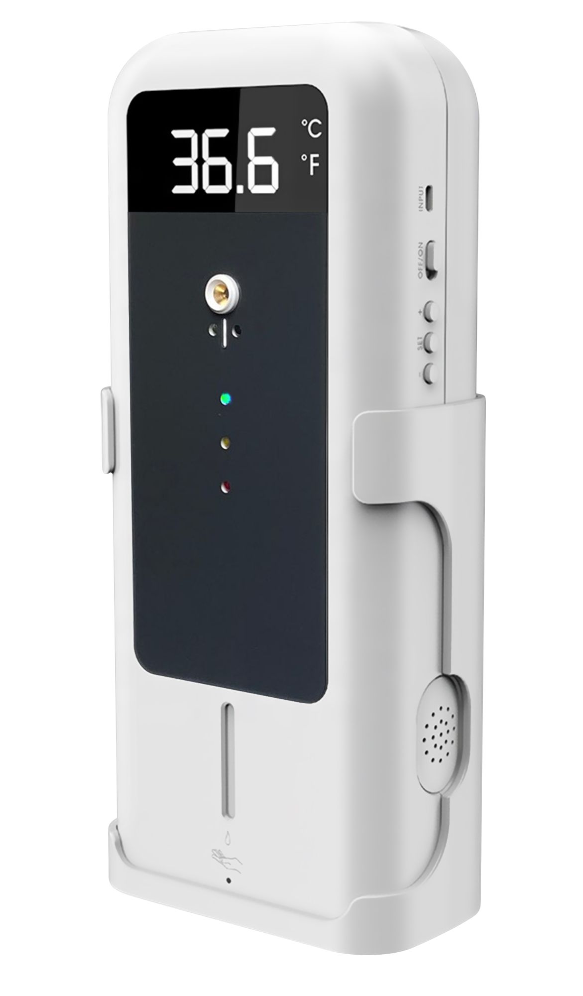 Бесконтактный термодатчик со встроенным диспенсером БЛОКПОСТ ТДК-01 (Габариты: 128х70х300 мм. Габариты транспортной упаковки : 580х25х122 мм). Функциональное назначение - измерение температуры тела/бесконтактная дезинфекция рук. Дальность измерения температуры - 3-5 см; Погрешность измерения температуры ± 0,2°С; Время измерения температуры 0,5 сек; Диапазон определяемой температуры 34 - 42.9 °C; Емкость для дез. раствора 300 мл; Звуковая и световая индикации. Материал: АБС-пластик, поликарбонат. Источник электропитания: 4 батареи АА или 5В постоянного тока 2.1 А. Рабочие режимы - цифровой экран/голосовое оповещение (11 различных языков). Диапазон рабочих температур от +10 до +35 °C. Влажность - 1% ~ 85%. В комплекте: запасная емкость для дез. раствора, штатив, крепежный кронштейн к стене, зарядный провод.