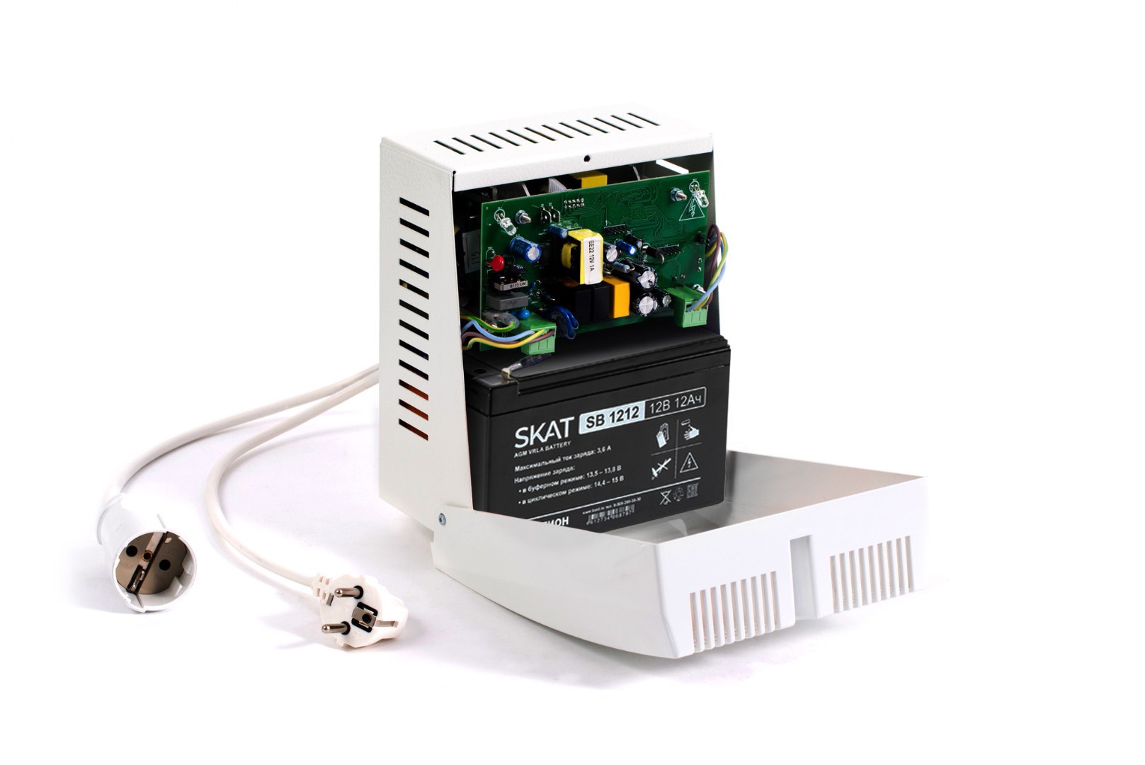 Металло-пластиковый корпус рассчитан под установку АКБ 12 Ач. Возможность подключения внешней аккумуляторной батареи ёмкостью до 65 Ач. Защита АКБ от глубокого разряда, оптимальный заряд АКБ, защита от перегрузки, индикация режимов работы, настенная установка.