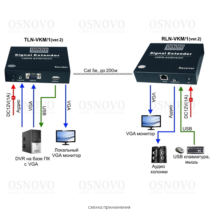 Комплект (передатчик+приемник) для передачи VGA, USB(клавиатура+мышь) и аудиосигнала по сети Ethernet. Расстояние передачи "точка-точка" до 200м. Возможность увеличить расстояние передачи при помощи Ethernet коммутаторов или удлинителей. Разрешение до 1920х1080, 60Гц. Сквозной VGA выход у передатчика. Можно подключать до 253 приёмников RLN-VKM/1(ver.2) в режиме Multicast. Передатчик: Вх. - D-sub 15(VGA)/USB/TRS3.5мм(аудио)/Роз.2,1х5мм(DC12V). Вых. - D-sub 15(VGA)/RJ45. Приёмник: Вх. - RJ45/Роз.2,1х5мм(DC12V). Вых. - D-sub 15(VGA)/TRS3.5мм(аудио)/USBх2. В комплекте БП DC12V(1А) - 2шт, соединительные шнуры для подключения к источнику сигнала - VGA, USB, аудио. Размеры каждого устройства (ШxВxГ): 130x30x118мм. Вес: 0,7 кг. Рабочая температура:-15..+55гр. С.
