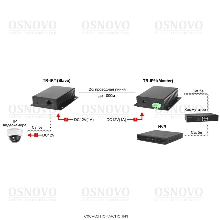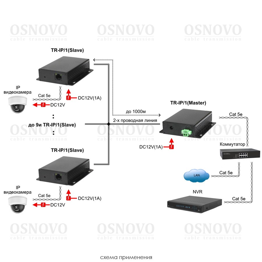 Удлинитель Ethernet (VDSL) до 1000м по коаксиальному кабелю RG59 (RG6), телефонному, UTP кабелю. Скорость передачи по RG59: 95Мбит/с(50м), 93,4Мбит/с(500м), 85,3Мбит/с(1000м). Устройство может работать в 2-х режимах: точка-точка и точка - многоточка. Возможно каскадное подключение до 9 IP-камер к одному приемнику. Разъемы: вх.RJ45 / роз. 2,1x5 (DC12V), вых.-BNC. Комплект: приемопередатчики TR-IP/1 - 2шт, БП DC12V(1A) - 2шт. Размеры (ШxВxГ): 105х25х65мм. Рабочая температура -45...+85 гр.С.
