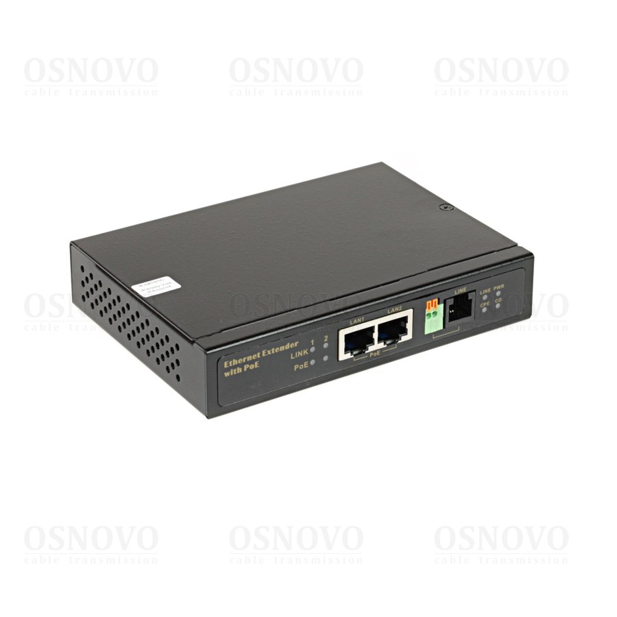 Удлинитель Ethernet (VDSL) на 2 порта до 3000м с функцией PoE. Соответствует стандартам PoE IEEE 802.3af/at. Автоматическое определение PoE устройств. До 30W на порт. Скорость передачи 90Мбит/с (300м), 56Мбит/с (600м), 30Мбит/с (900м), 16Мбит/с (1500м), 14Мбит/с (2000м), 8Мбит/с (2400м), 5Мбит/с (3000м). 2 режима -клиент(CPE)/сервер(CO) . Вх.-роз. 2.1х5мм(DC48V, 1,8A). Вх./вых.- RJ11(VDSL2)/клеммы(VDSL2)/RJ45(Ethernet)x2. БП DC54V (1,66A) в комплекте.Размеры (ШxВxГ): 137х27х100 мм. Рабочая температура 0...+50 гр.С.