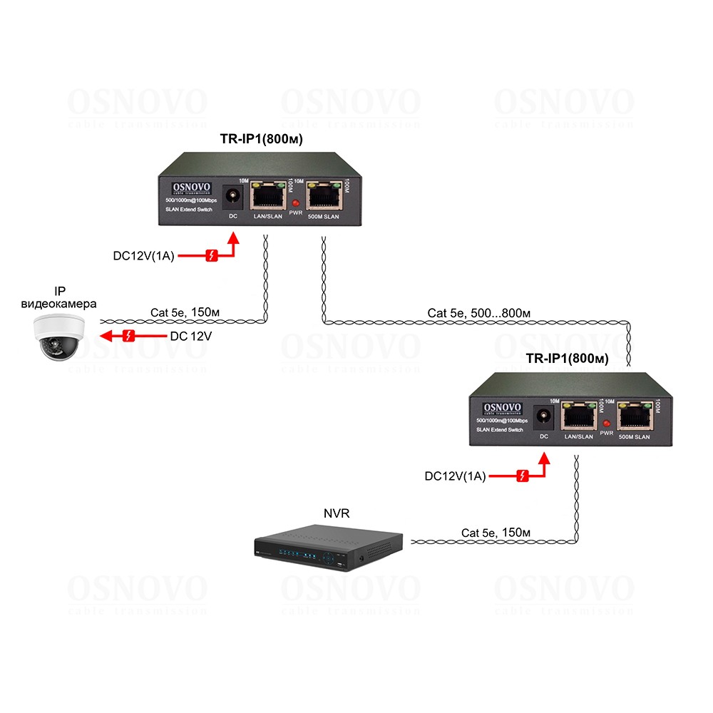 Удлинитель Fast Ethernet до 800м. (Для подключения необходимо 2 устройства). Скорость передачи - 100 мбит/c - (500м), 10 мбит/c - (800м). Разъемы: DC2.1х5мм, 2xRJ45(10/100 Base-T, SLAN). Встроенная грозозащита 10kV. БП DC12V(1A) в комплекте. Размеры (ШxВxГ): 90х23х69мм. Рабочая температура -40...+80 гр.С.