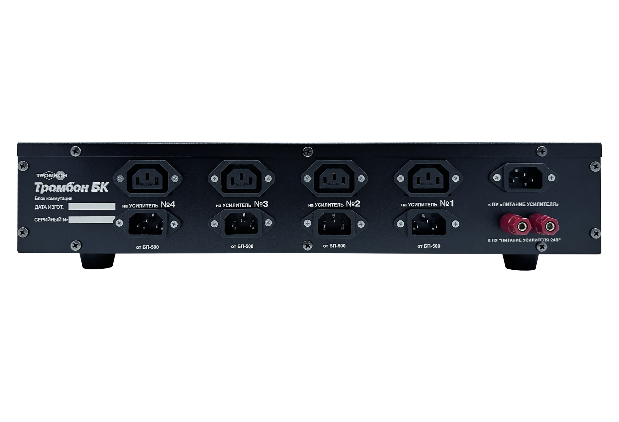 Блок коммутации «Тромбон БК» предназначен для коммутации питающего напряжения ~230В 50 Гц на 4 усилителях мощности «Тромбон – УМ». Прибор соответствует техническим условиям ТУ 4371-001-88310620-08 и нормативным документам: Своду правил 3.13130.2009 и ГОСТ Р 53325-2012.