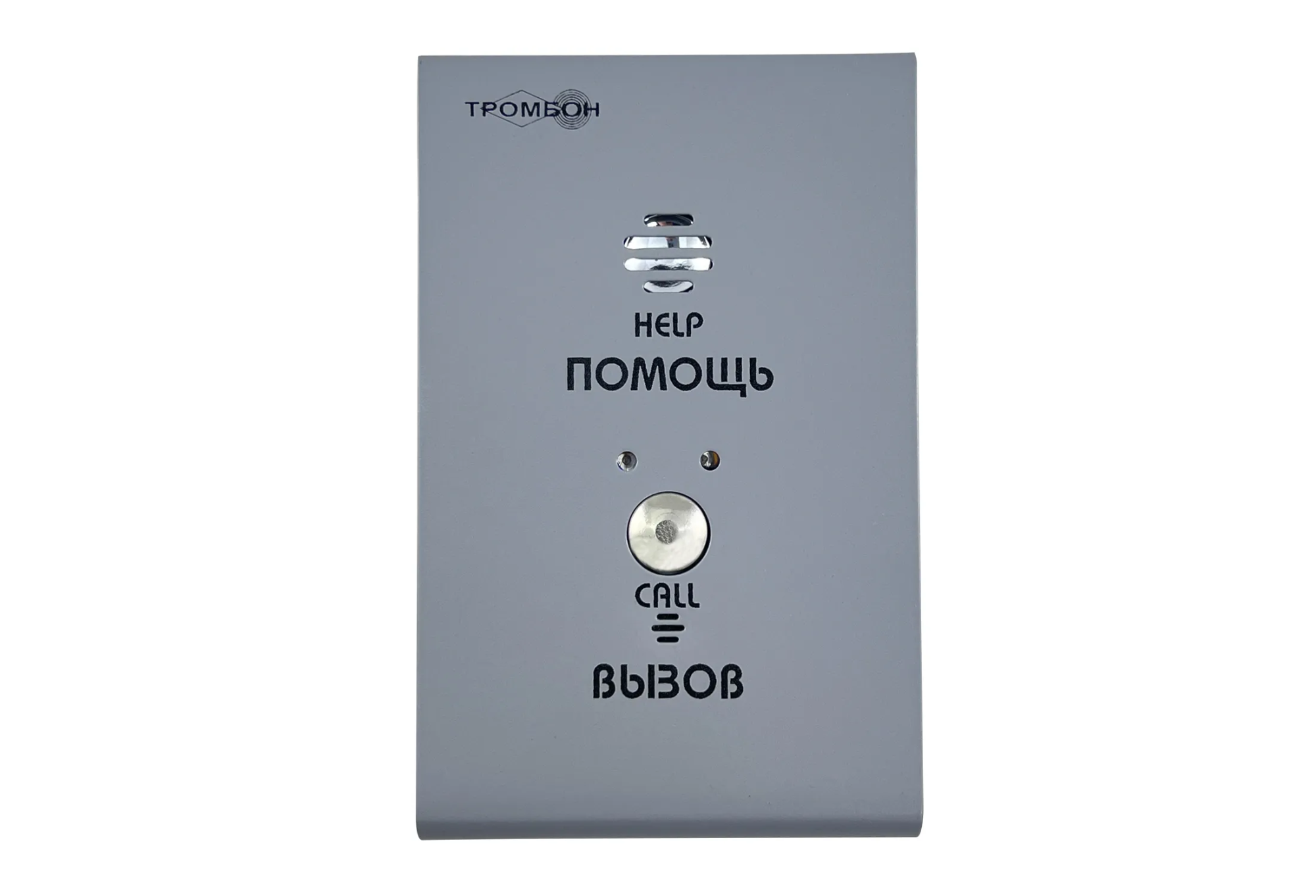 Абонентское вызывное устройство «Тромбон СОРС–АВУ» исполнение Н (цвет RAL7045 матовый), устанавливается в зонах оповещения и предназначено для подачи вызова на пульт диспетчера «Тромбон СОРС– ПД» и организации с ним двусторонней голосовой связи. Для организации связи с маломобильными группами населения к абонентскому вызывному устройству могут быть подключены устройства вызова в виде кнопки или стропы. Для информирования персонала о том, что необходима помощь, к абонентскому вызывному устройству подключается информационное свето-звуковое табло