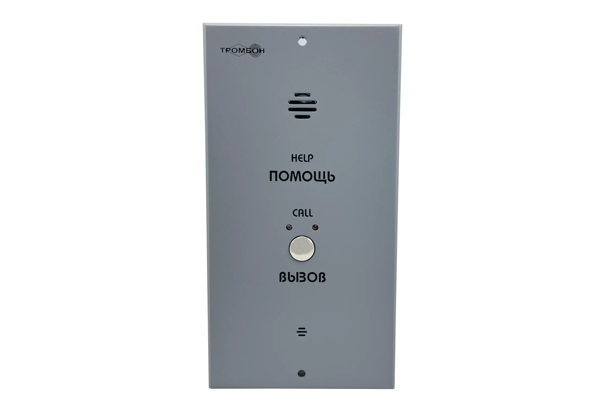 Абонентское вызывное устройство «Тромбон СОРС–АВУ» исполнение В (врезное исполнение) (цвет RAL7045 матовый) устанавливается в зонах оповещения и предназначено для подачи вызова на пульт диспетчера «Тромбон СОРС– ПД» и организации с ним двусторонней голосовой связи. Для организации связи с маломобильными группами населения к абонентскому вызывному устройству могут быть подключены устройства вызова в виде кнопки или стропы. Для информирования персонала о том, что необходима помощь, к абонентскому вызывному устройству подключается информационное свето-звуковое табло.