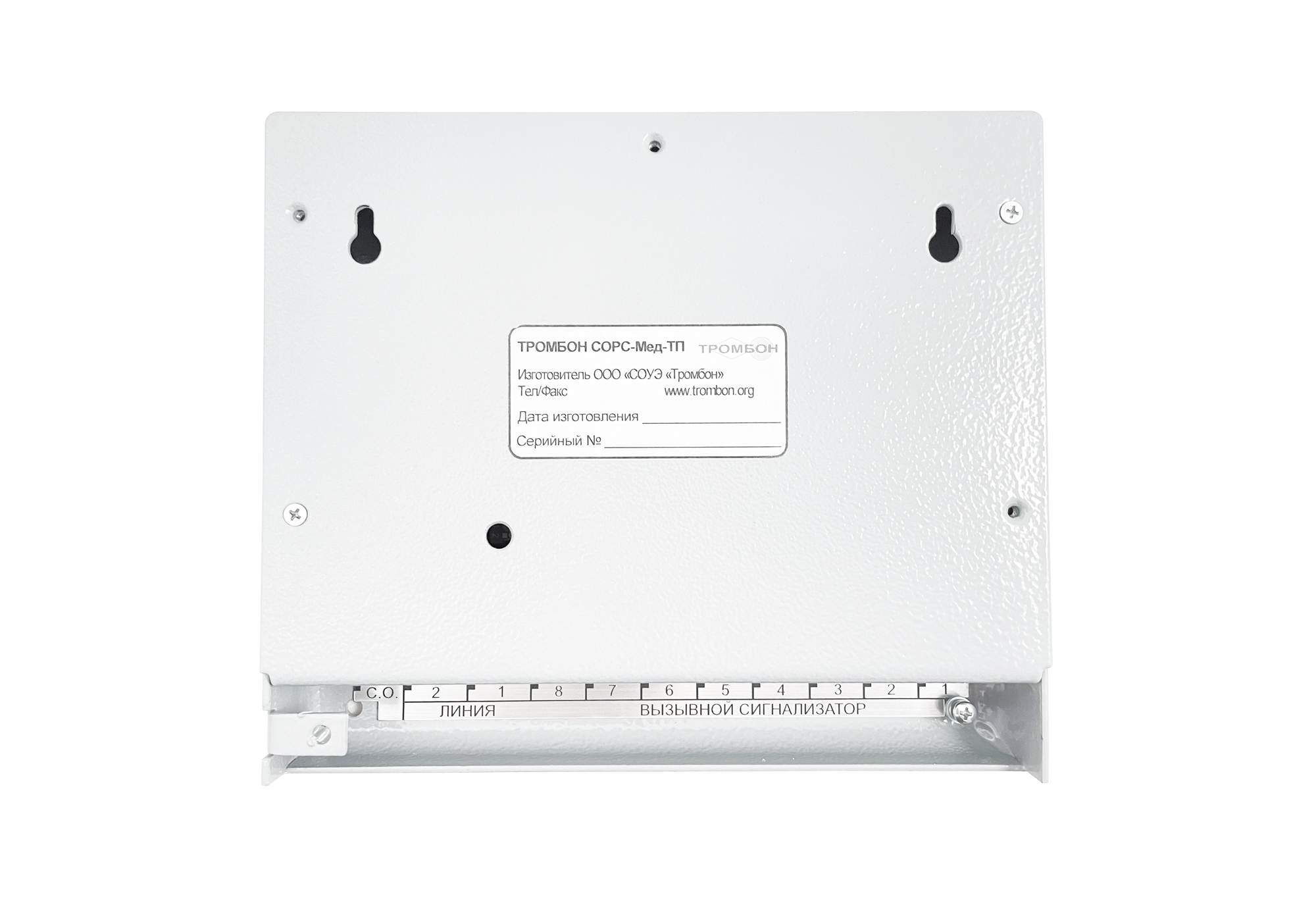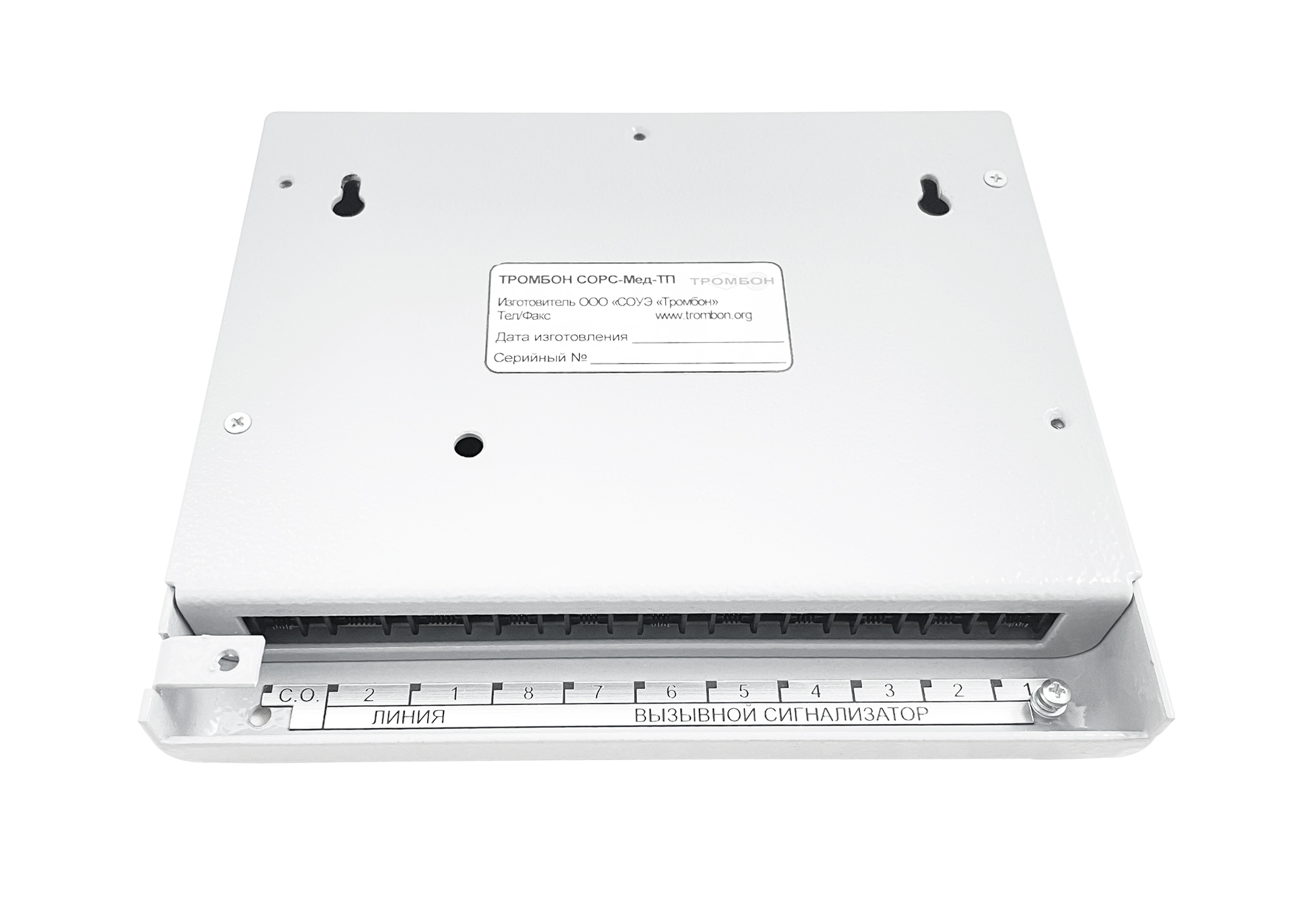 Терминал палатный «Тромбон СОРС-Мед-ТП» – двустороннее переговорное вызывное устройство. Устанавливается в многоместной палате и обеспечивает пациентов двусторонней голосовой связью с медсестрой.
