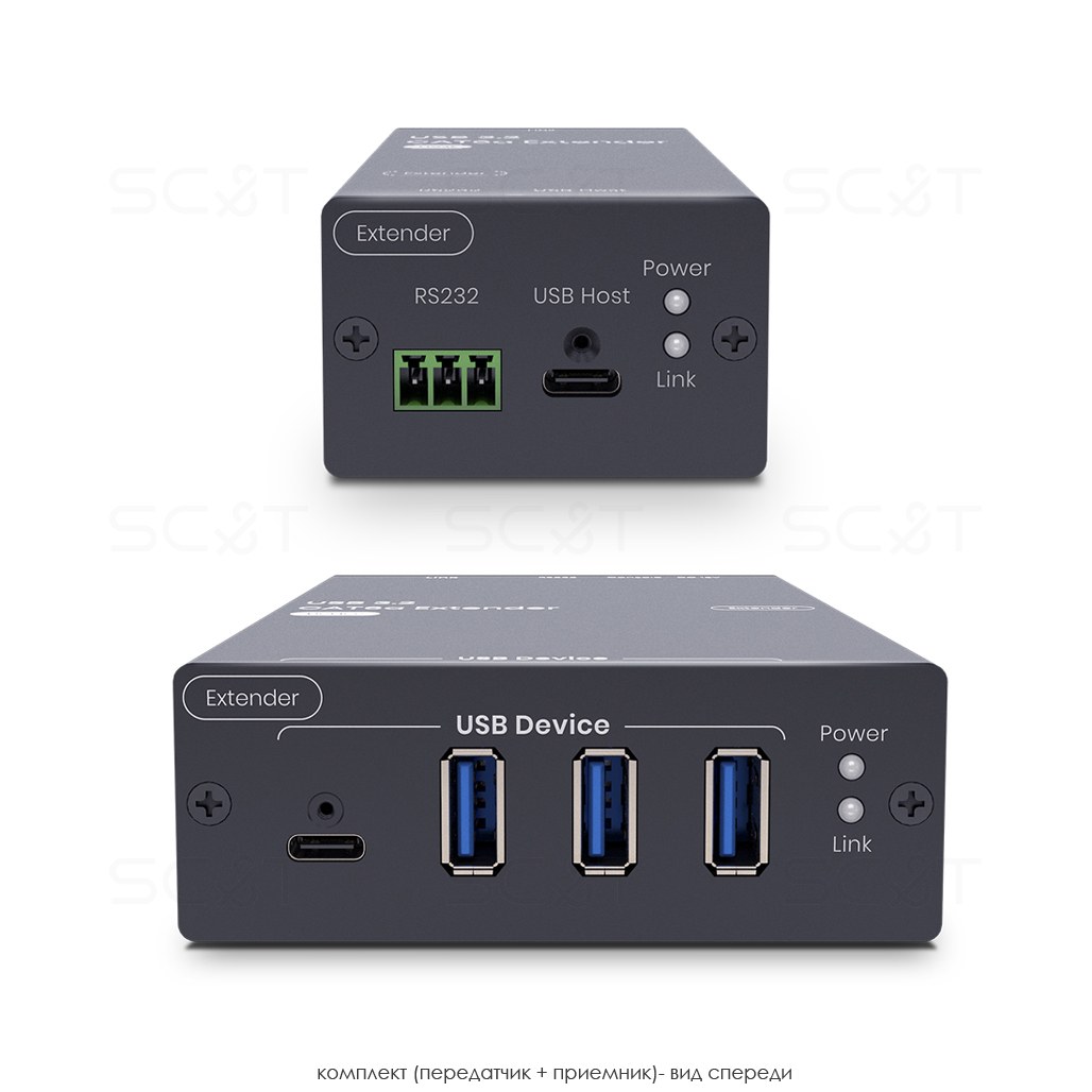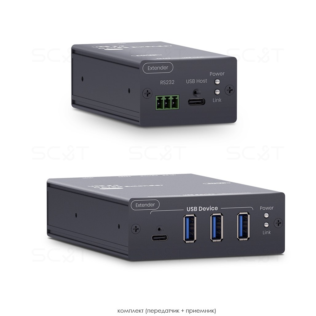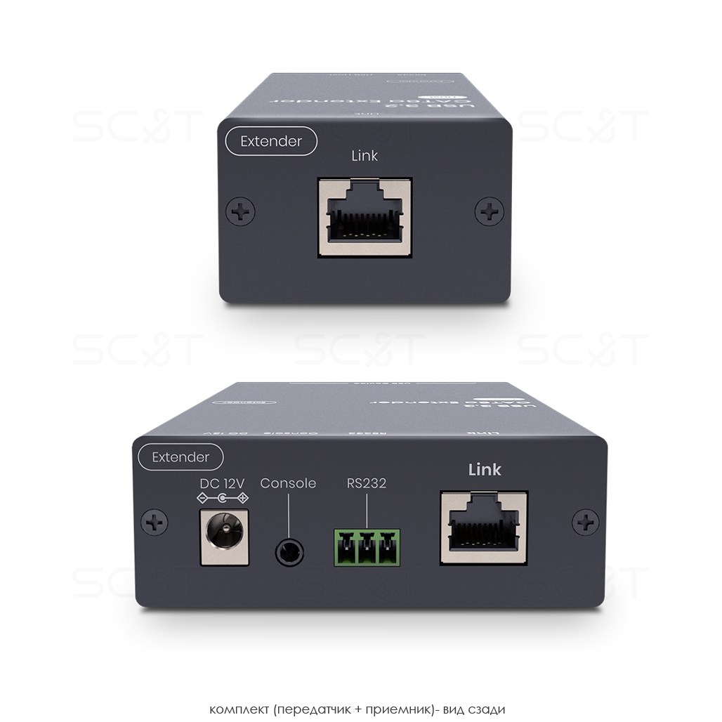 Удлинитель USB и RS232 по кабелю витой пары(CAT6a/7) до 100м. Поддержка стандартов USB3.2 Gen 1/2.0/1.1. Максимальная скорость передачи данных 5Гбит/с. Приемник : Вх.- USB(A)x3/USB(C)х1/TRS3.5мм(RS232)/Роз.2,5х5,5мм(DC12V). Вых. - RJ45/Terminal Block(RS232). Передатчик : Вх. - USB(C)/Terminal Block(RS232). Вых. - RJ45. В комплекте БП для приемника DC12V(1,5А) - 1шт. Размеры передатчика (ШxВxГ): 50x32x93мм. Размеры приёмника (ШxВxГ): 87x32x123мм. Рабочая температура 0…+55°С.