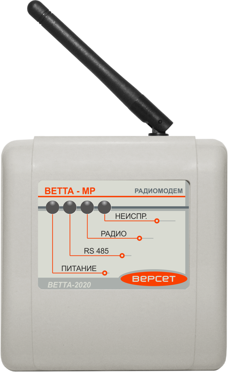 Универсальное приемопередающее устройство с модемом радиоканала. Обеспечивает радиоканальную связь между пультовым и объектовыми приборами системы «ВЕТТА-2020». В системе передачи информации ведущий радиомодем выполняет функции ретранслятора (РТР), а ведомый – функции прибора объектового оконечного (ПОО). Дальность действия со штатными антеннами на открытой местности до 1000 м., с направленными антеннами (в комплект поставки не входят) – до 5000м. Питание от внешнего ИП 12 В.