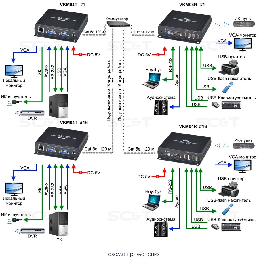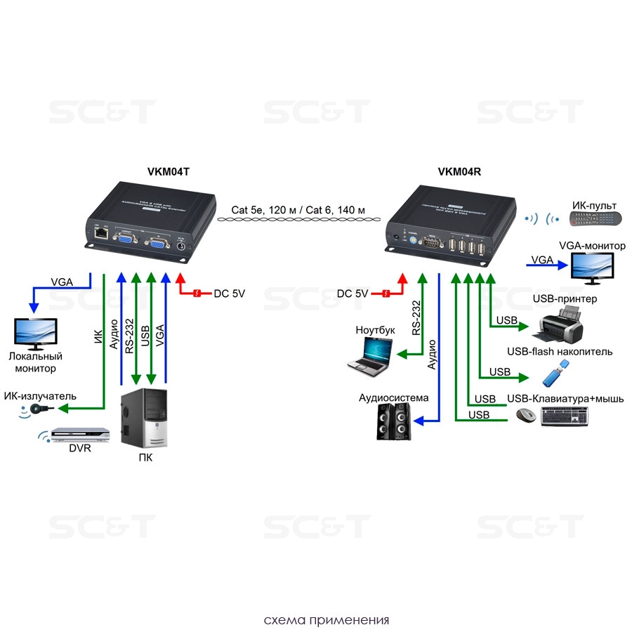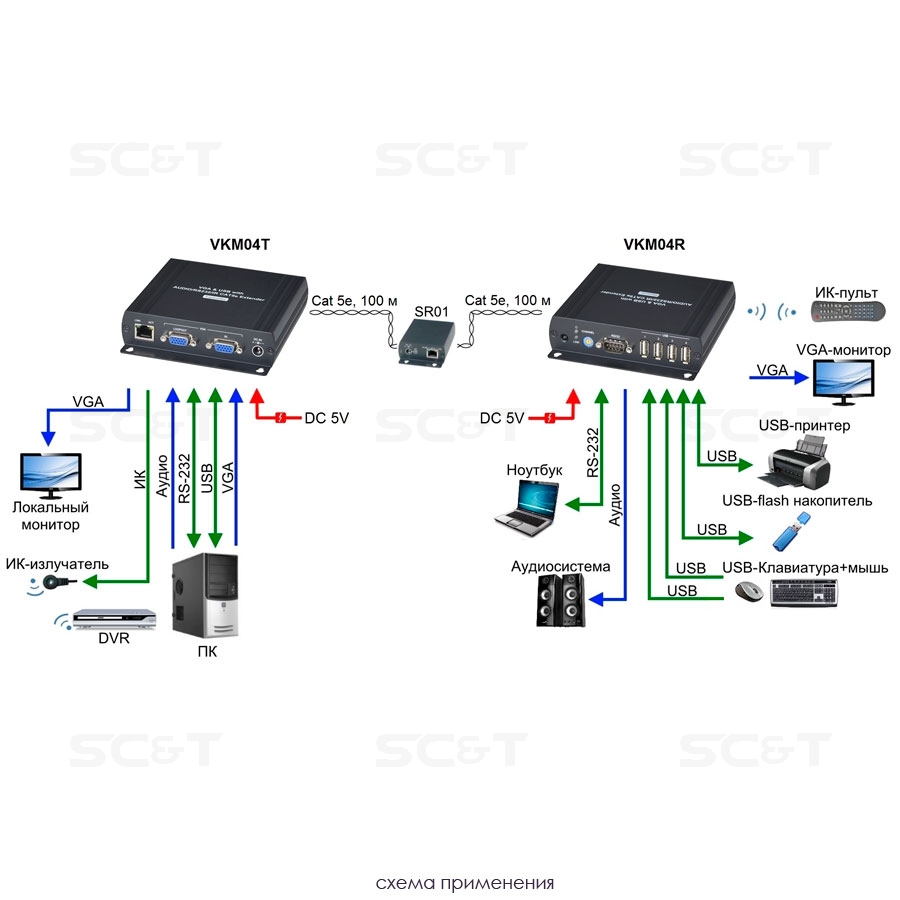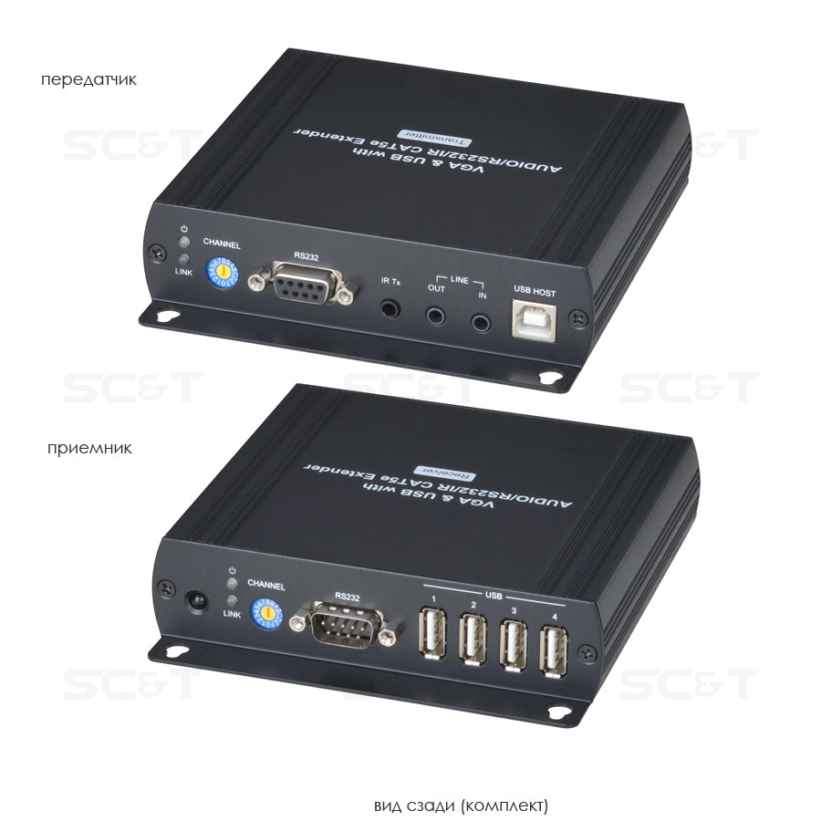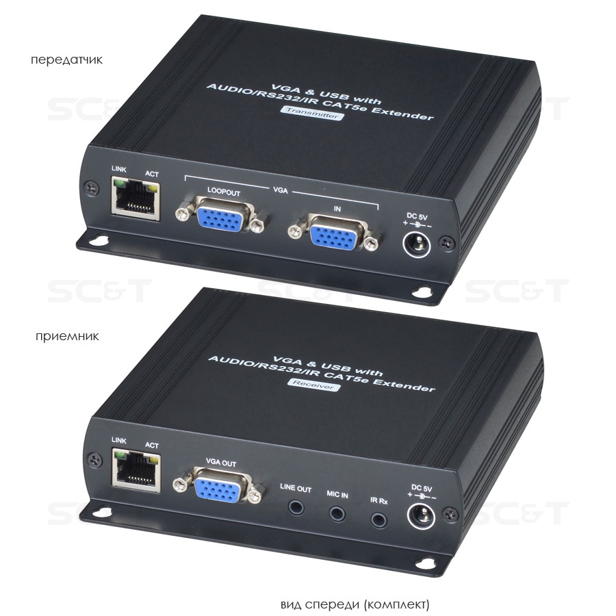 Комплект (приёмник и передатчик) для передачи VGA, 4xUSB2.0, RS232, Стерео Аудио и ИК-управление на расстояние до 120м(CAT5e)/140м(CAT6). При использовании повторителя SR01 (через каждые 100м) расстояние передачи неограничено. Разрешение до 1920х1200, cкорость передачи данных до 850Мбит/с (High Speed). Устройство предназначено для работы с PC и регистраторами на базе ОС Windows/Linux с драйверами для работы USB-хаба. В комплекте БП DC5V(2А) - 2шт. Размеры каждого устройства (ШxВxГ): 125х30х140мм. Рабочая температура -40...+55°C.